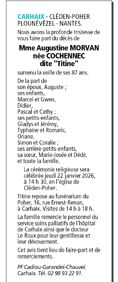 Madame Augustine MORVAN née COCHENNEC